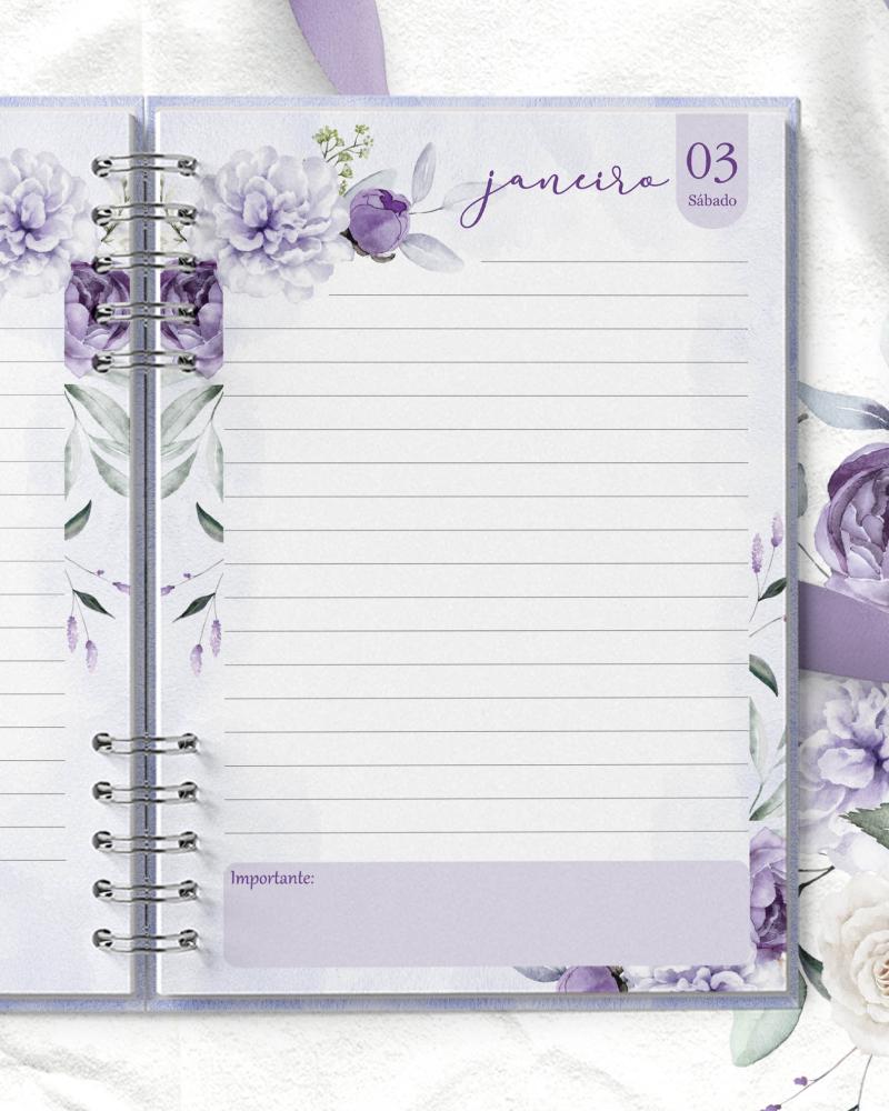 Brinde: Bolso interno, Marcador de páginas e fechamento em elástico ou botão