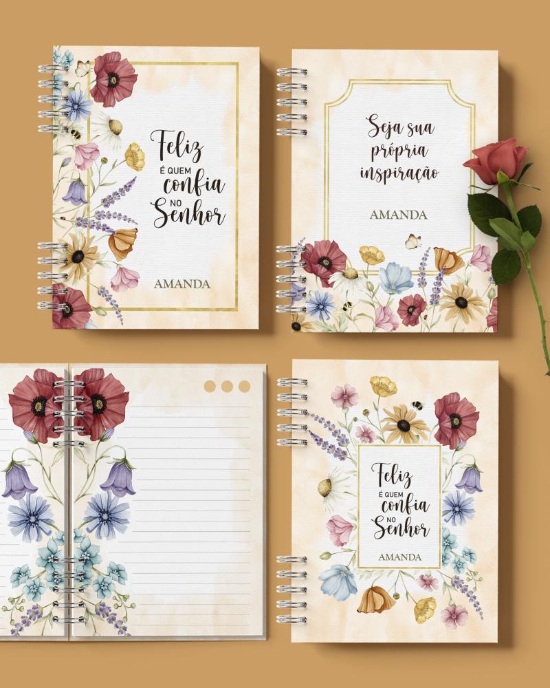 Brinde: Bolso interno, Marcador de páginas e fechamento em elástico ou botão