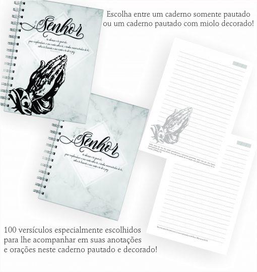 Brinde: Bolso interno, Marcador de páginas e fechamento em elástico ou botão